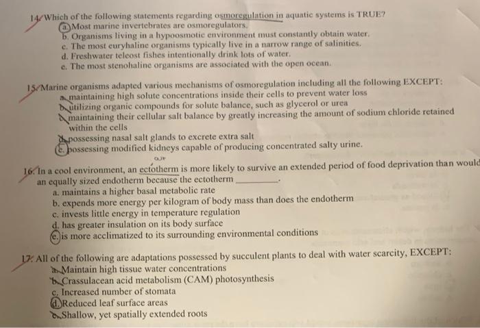 Solved Organisms Categorized As Osmoconformers Are Most Likely A Amphibious Alternating Between Aquatic And Terrestrial Environmens B Found In Terrestrial Environments With Adequate Moisture C Found In Arid Terrestrial Environments D Found In